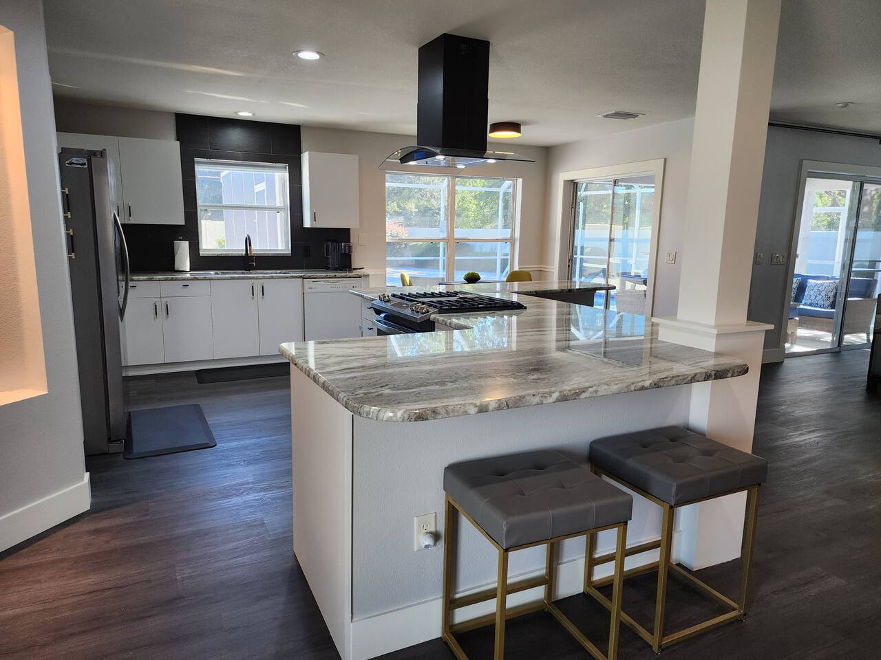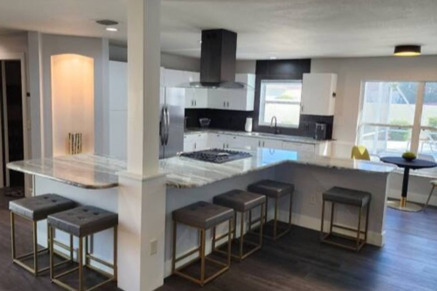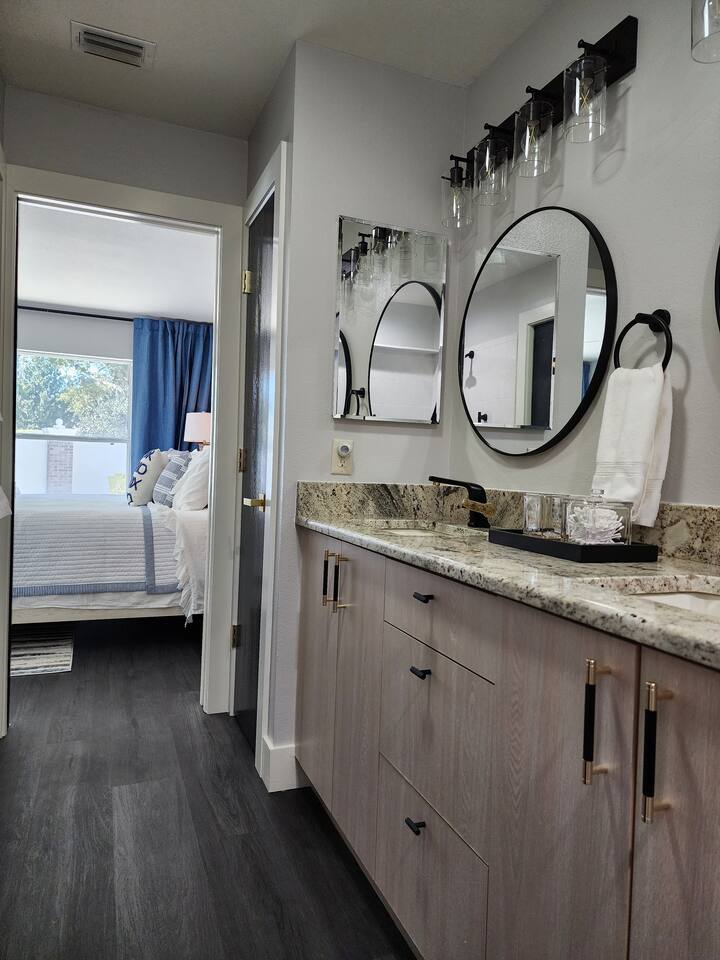 Modern, affordable luxury. Heated saltwater pool. Tiki Hot tub, Open concept, double lot huge courtyard, granite throughout with tastefully themed bedrooms.