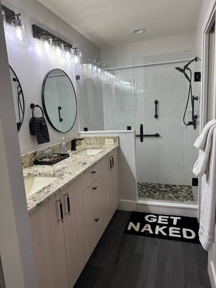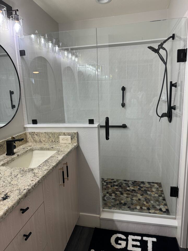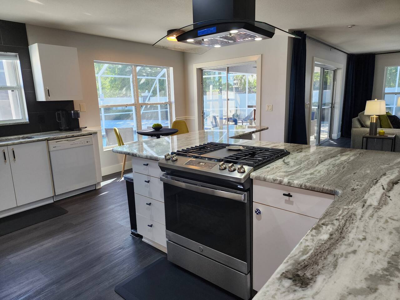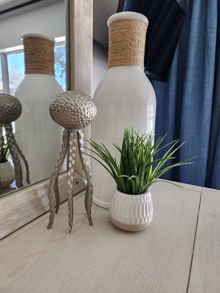Modern, affordable luxury. Heated saltwater pool. Tiki Hot tub, Open concept, double lot huge courtyard, granite throughout with tastefully themed bedrooms.