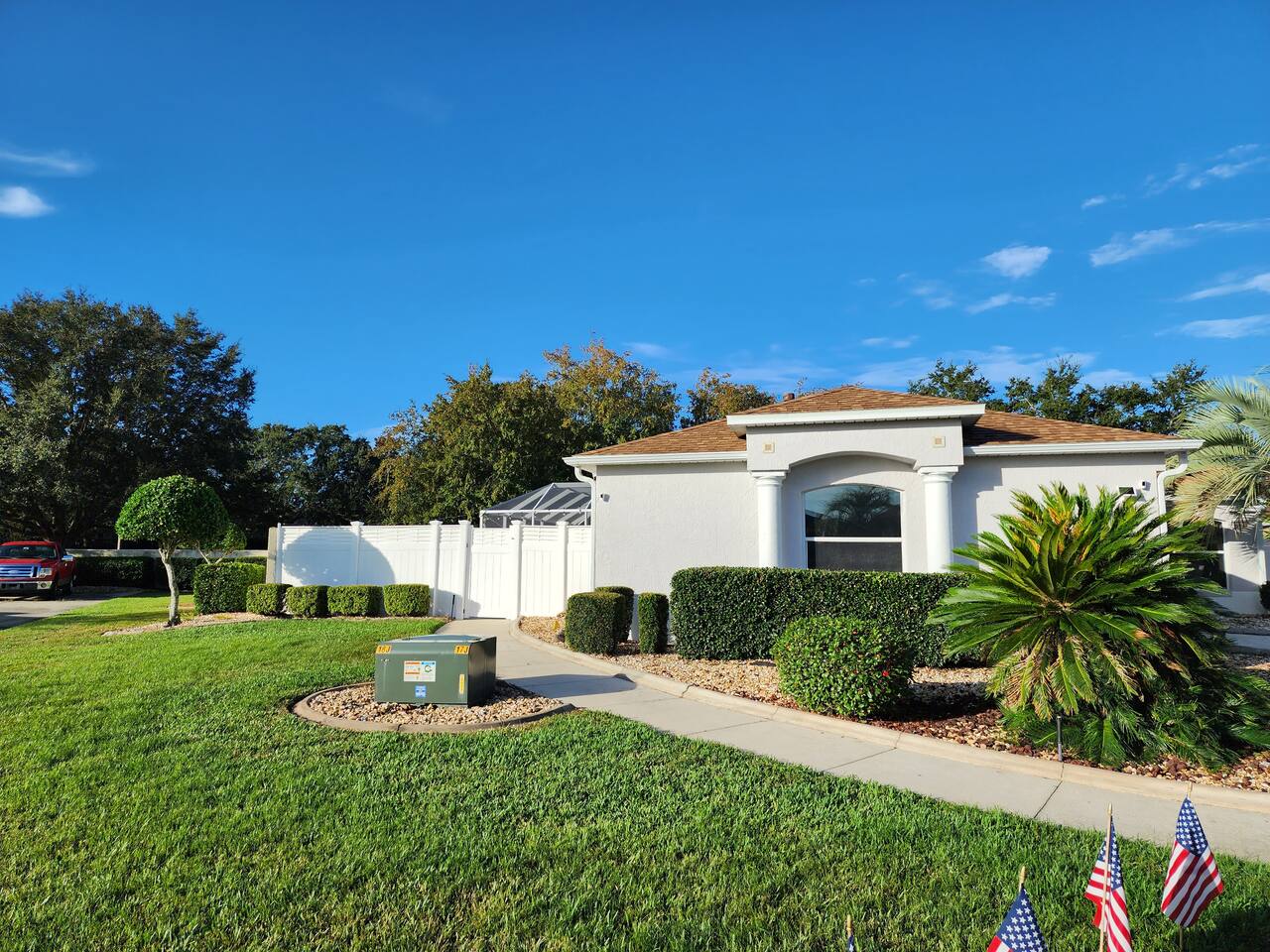 Private Heated saltwater pool. A tiki hot tub to die for, modern spacious home. We have bedrooms themed after the town squares! Walk to the Lopez course/restaurant. We have one of the largest corner lots in The Villages. Outdoor seating, pool is screened in. Our kitchen is fully stocked for cooking, the home is spotless clean with little luxuries that will surprise you. We are half way between Spanish Springs and Lake Sumpter. Easy cart ride to eat, dance, shop, golf, & more! #memories