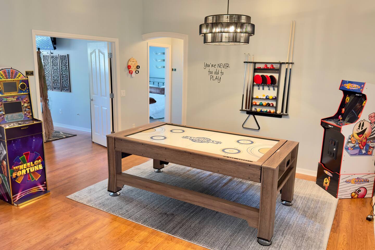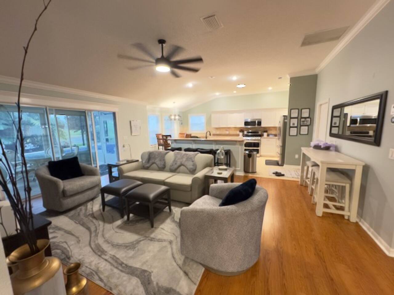 Open concept, tons of seating in and out, fully loaded kitchen, we're 5 minutes to Lake Sumter and you can walk to golf. Heated pool, hot tub, game room and all the comforts you didn't even know you needed. Our guests are treated like family Pool heated Nov through May