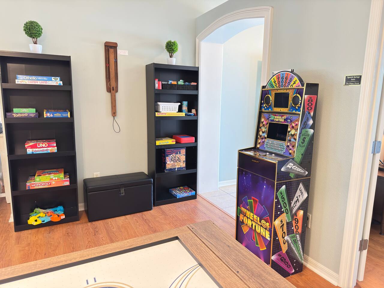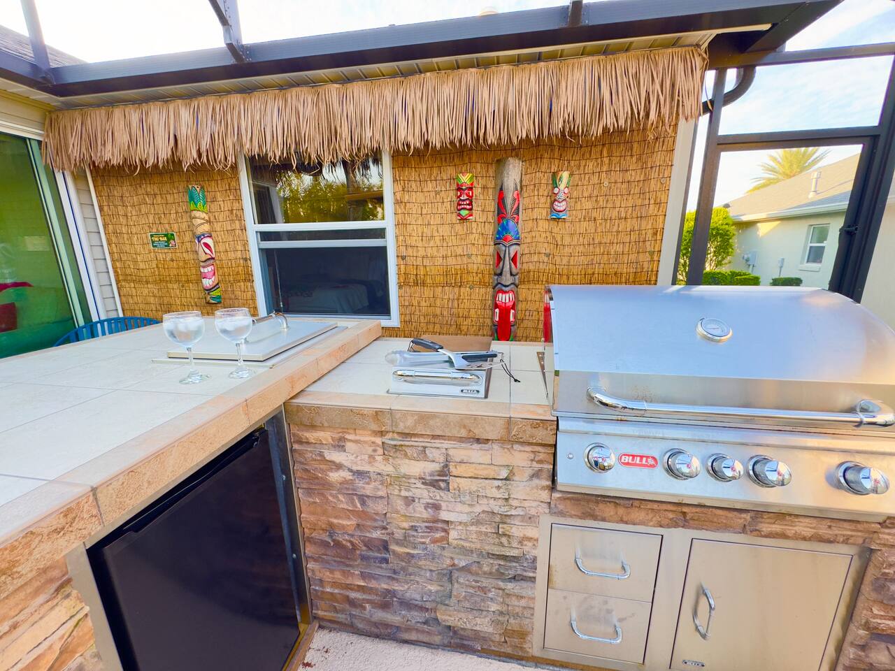 Private Heated saltwater pool with waterfall, hot tub, outdoor kitchen & grill, Tiki bar, indoor game room. . 6 minutes to Lake Sumter via golf cart also a great walk Affordable luxury, modern spacious home. Our bedrooms are themed after the town squares! Walk to the golf course/restaurant or rec center. Close to everything, making it easy to plan your visit. We do not skimp on amenities. Our home is stocked with things you didn't even know you needed. Comfy beds, lots of seating in & out